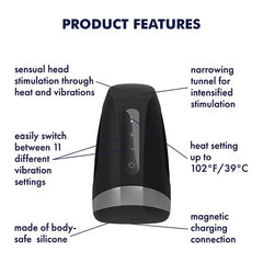 Satisfyer Men Heat Vibration mixes an exciting heating function with stimulating, deep vibrations for maximum penis tip stimulation and a truly authentic enjoyment experience. This sex toy is ideal for increasing arousal and preparation for hot foreplay. This vibrating masturbator for the modern guy has a new heat element that makes your alone time astonishingly realistic. Enjoy the comfortable warmth of this silky love tunnel while being pushed to explosive climaxes at temperatures of up to 40 degrees. The combination of the fascinating heating feature and the stimulating, forceful vibrations delivers amazing stimulation for your glans.