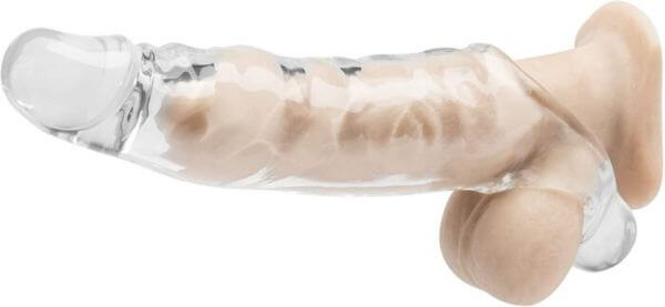 There are penis sleeves built for men with erectile dysfunction that makes it easier for the penis sleeve to stay on during sex. Men with healthy erection only need to slide their penis into the penis sleeves and can rely on their own erection to keep the penis sleeve in place. But, as a man with erectile challenges, penis sleeves made for this purpose have a hole underneath, where the balls go into, and some penis sleeves may come with straps as well, so you can slide your semi hard penis into the penis sleeve with the balls holding it, this way you can be able to enjoy penetration. An advantage of penis sleeves is that you can also experience ejaculation, this might not always be the case but it is possible, especially with a semi hard erection.