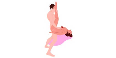 With her shoulders resting on the bed or sofa, she holds the man between her legs. He penetrates and stimulates the clitoris with one hand. It takes balance to do this position, as a slip can be fatal.