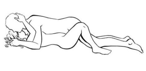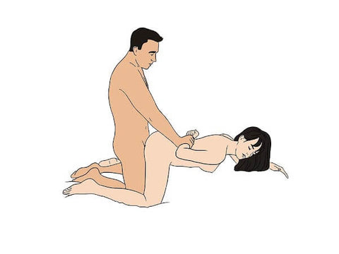 The woman lies down with a pillow or two on her stomach so he can get in from behind. With the added support, the lower back won't hurt and penetration improves. This is a deeper position for them and one in which the man with the smaller limb has an advantage.