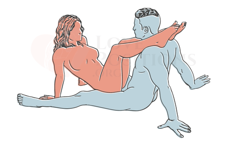 One of her legs is stretched out while the other crosses his chest and leans on his shoulder. The man fits and penetrates. One of the best positions in the kama sutra, it requires some flexibility from women.