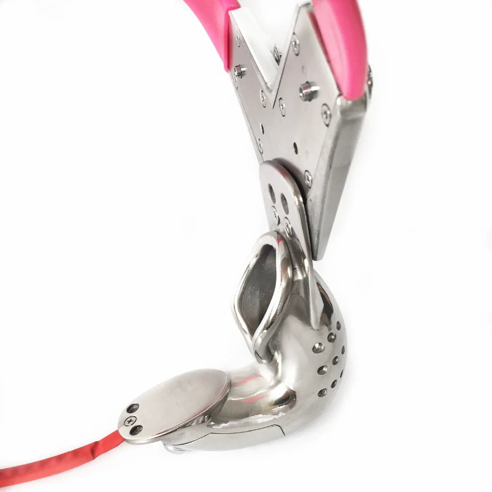 Black emperor stainless steel red male chastity belt device - waist 64-70cm / pink is backordered and will ship as soon as it is back in stock.