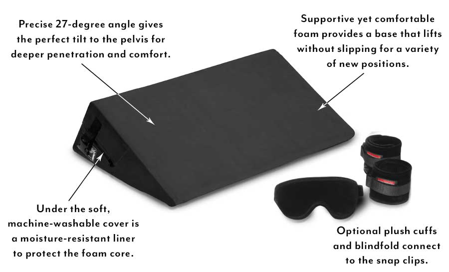 Liberator Label Wedge Intimate Sex Pillow With Wrist Cuffs and Blindfold