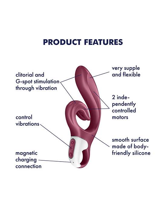 Very flexible, use the looped handle to easily experience supreme G-Spot and clitoral stimulation. Built for pleasure connoisseurs, the Love Me provides dual and upside-down stimulation through its 2 powerful motors. Different from regular rabbit vibrators, the Love Me provides intensified stimulation from above, rather than below.