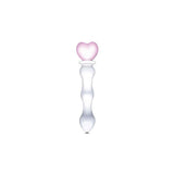 You'll swoon hard over this handblown glass dildo. Featuring a spiralled and nubby texture, a lovely pink heart doubles as an easy-to-grip handle, and looks stunning as it peeks out from within your most intimate area. The shaft is sensually undulating to provide mind-blowing stimulation, and it can be heated or cooled for sensation play. Non-porous, fracture-resistant and hypoallergenic, borosilicate glass is easily cleaned and compatible with all lubricants.