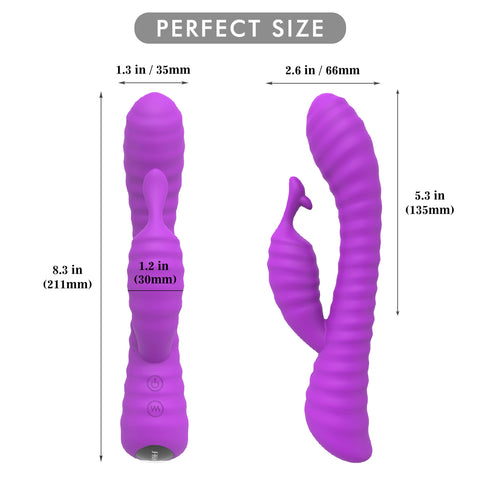The magenta and purple-coloured rabbit vibrators have a very appealing look. The medical silicone and ABS material are used in it. It has a smooth stick for its proper functioning. Its pleasant hand grip and wavy will produce enhanced thrilling excitement. It has got a slim waist design. The safe, odourless, and skin-friendly material and the ideal size of the vibrator will give superb heated masturbation to girls.