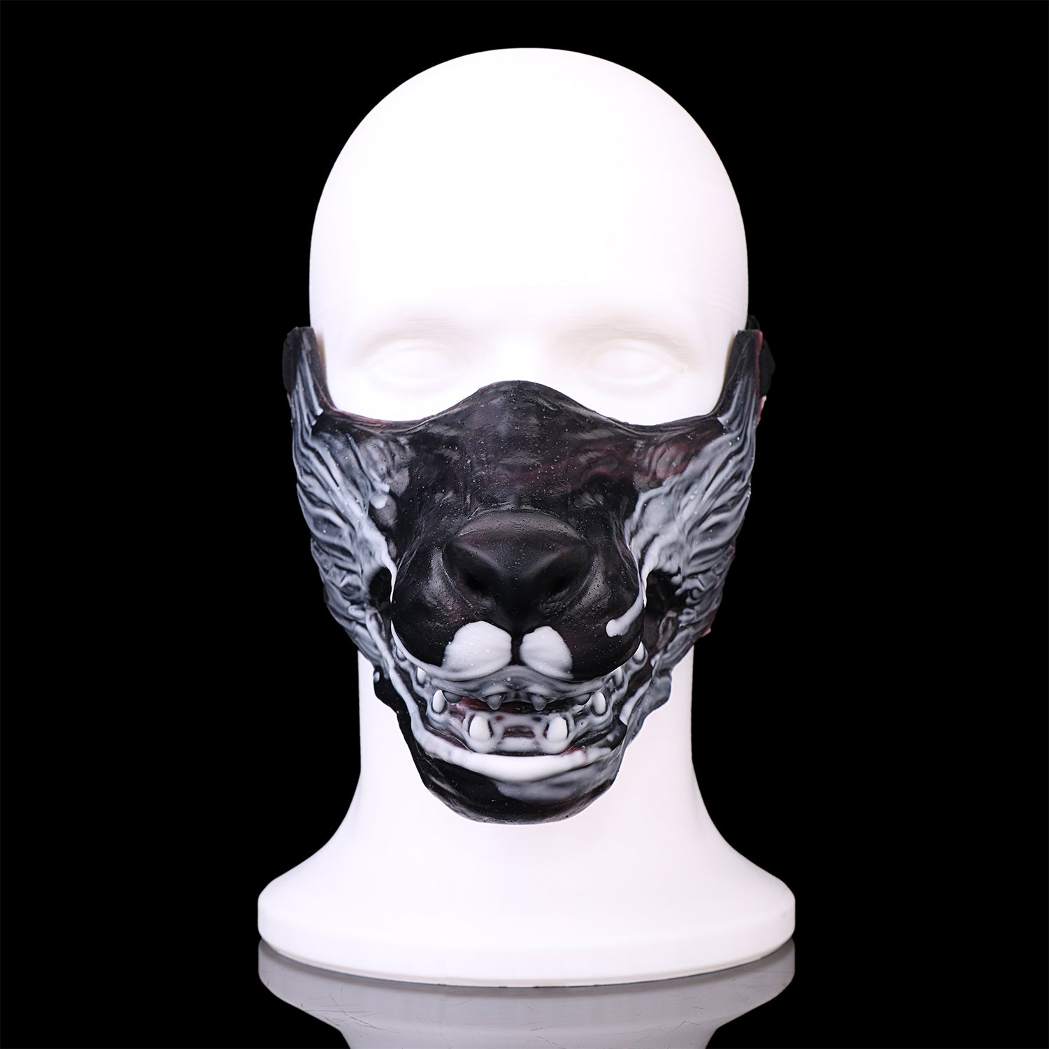 Hyper-Realistic & Intricately Detailed: Crafted from high-quality Liquid Silicone, this mask boasts a realistic appearance with exquisite texture, mimicking a fierce, stylized wolf or demonic creature. The striking details include: