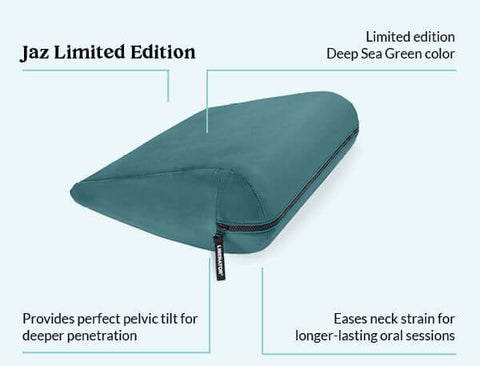 The JAZ pillow is a moisture resistant pillow that is made with materials that prevent it from getting scrunched up during lovemaking. Rather, it is quite soft and fluffy enough to hold the pressure of an ass resting on it without collapsing, the support is made even better due to the wedge shape of the pillow. This design ensures that the pillow can fit into any space in which it is needed during sex to provide the required support.