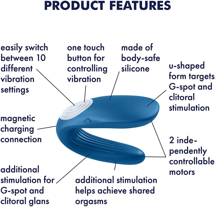One shaft lies on the clitoris while the other massages your G spot and his shaft.At the touch of a button, you can choose from three vibration intensities and seven vibration rhythms to bring you to climax together – thanks to the strong vibrations, he too benefits greatly from the toy.