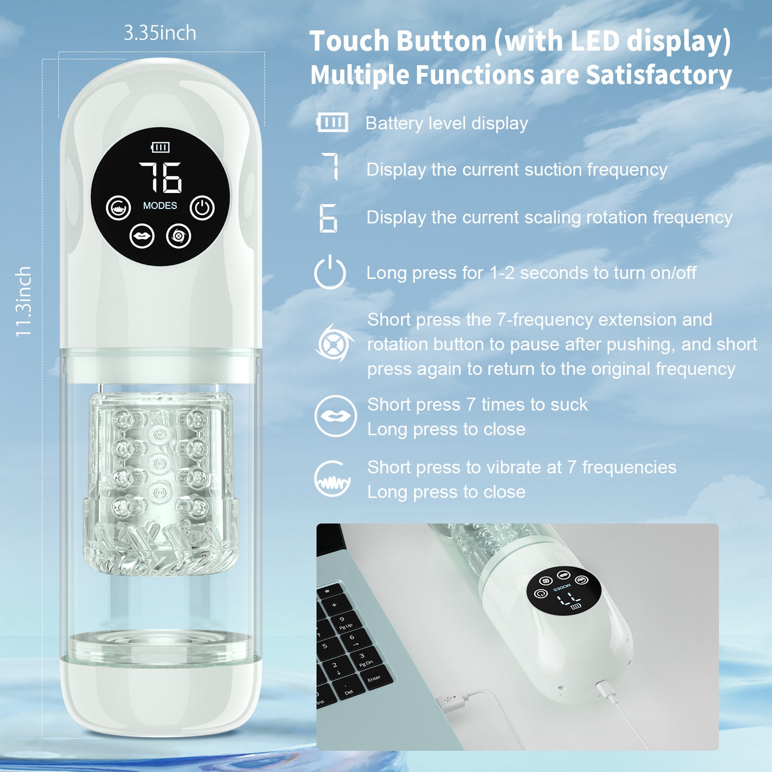 Male Masturbator Penis Pump With Upgrade 7 Thrusting Rotating Vibrating Sucking Licking Modes