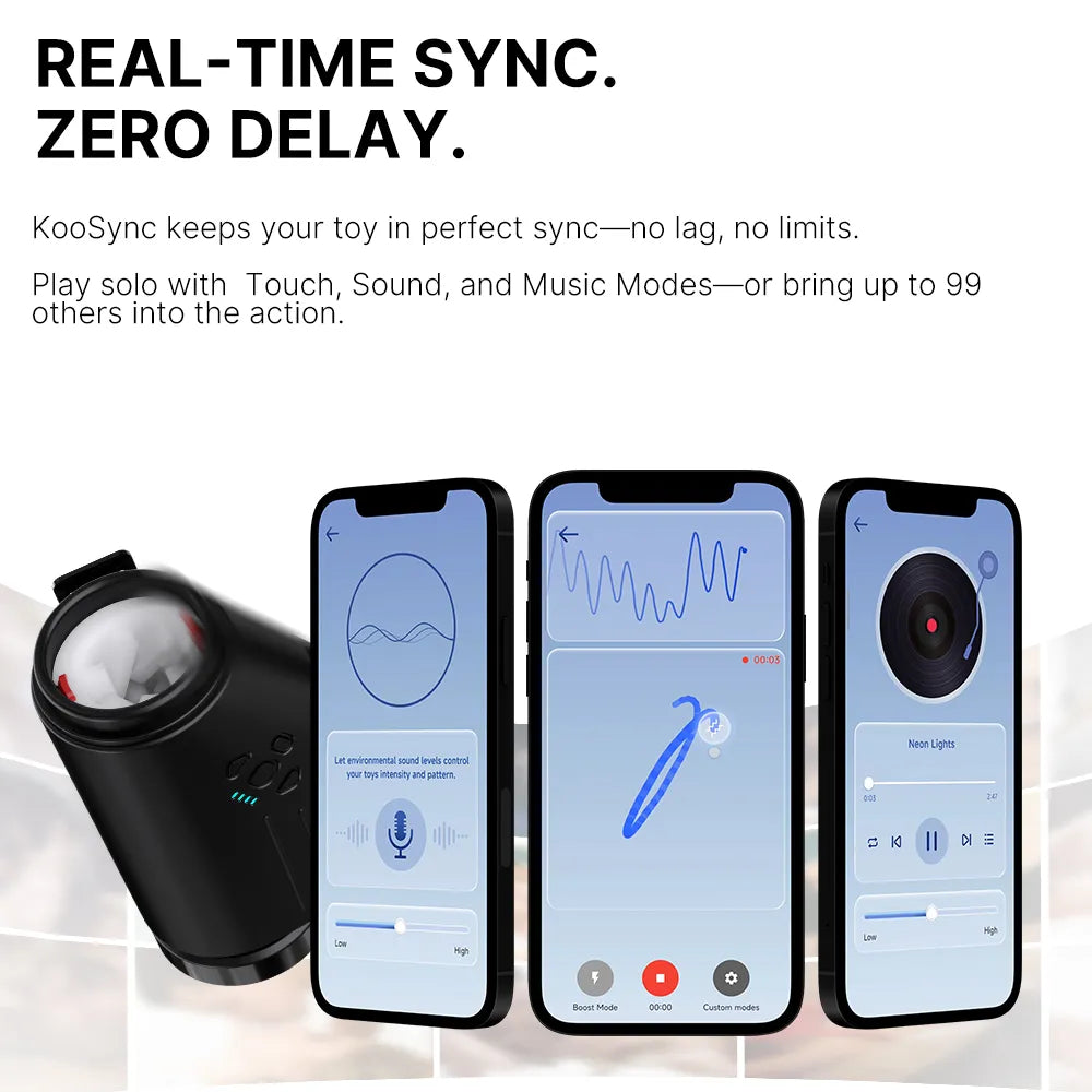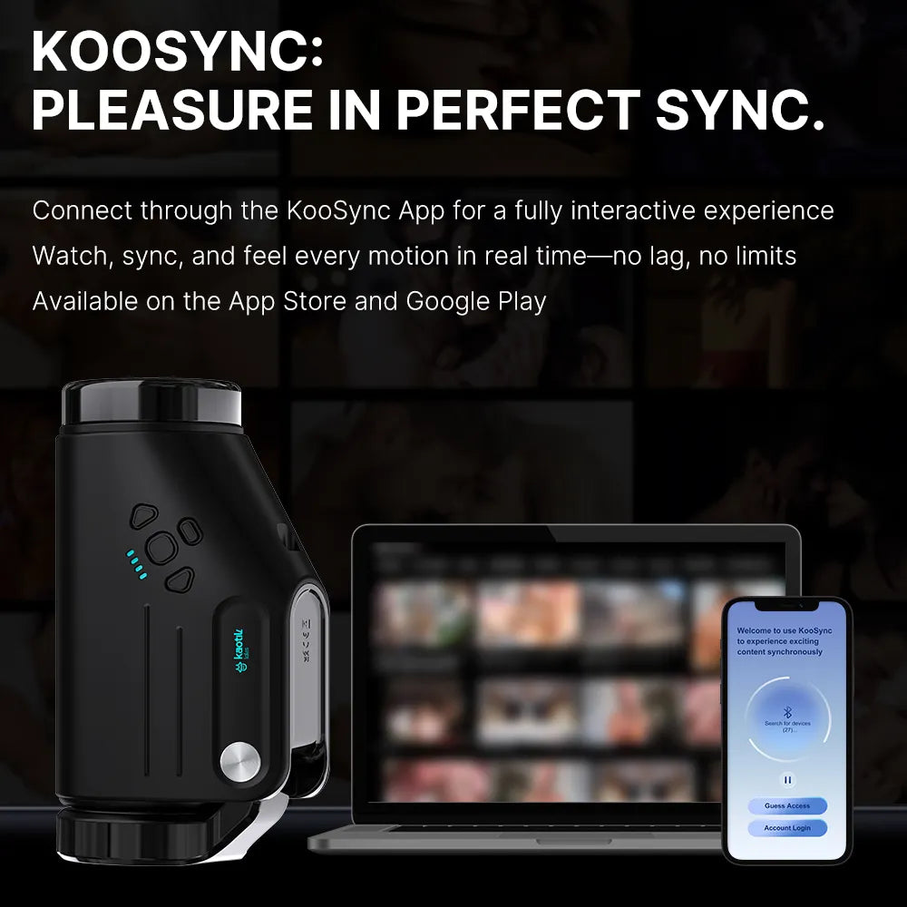 Connect to the KooSync app to sync with online videos, define your own pleasure, or allow a partner to control the device remotely, creating an interactive, long-distance experience.