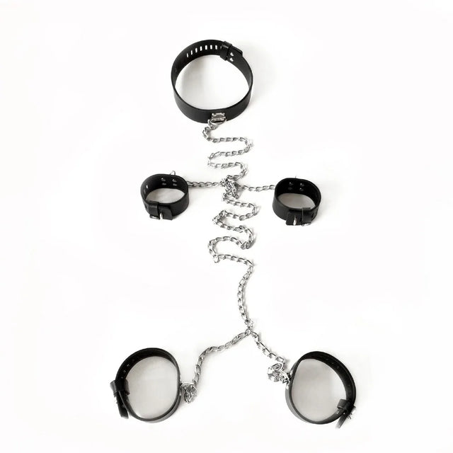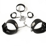 Black emperor Leather handcuffs ankle cuffs and neck collar restraints toys