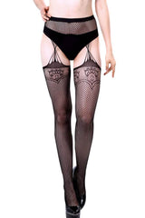 Honeysx Black Lace Fishnet Faux Gartered Pantyhose