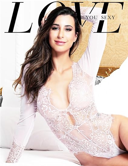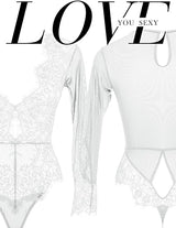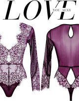LOVE YOU SEXY Women Lace Lingerie,Long Sleeves Bodysuit,Deep V Bodysuit Lingerie,Sheer Mesh Teddy Lingerie