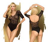 This tight-fitting teddy hugs your curves and gets you ready to go all the way. With its 3/4 sleeves and dense pattern, the teddy keeps your sexiness covered in the front, while the back reveals your full sexiness. The design is highlighted by the playful floral details on the top of the teddy.