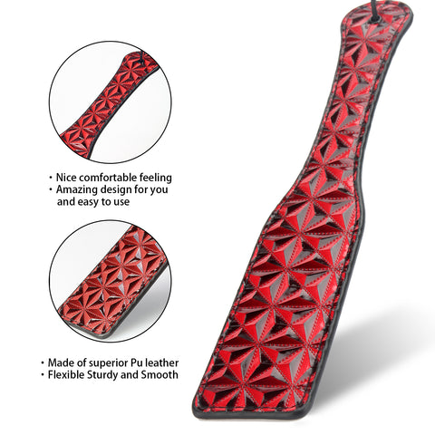 5. This beautiful Spanking paddle may just become the crown jewel of your toy box. The Beat Me Please Spanking paddle's stylish red and black design is eye-catching and so effective.-Fashion dsign with the diamond pattern.