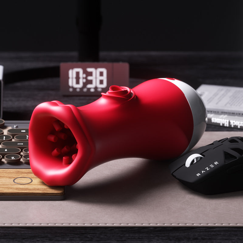 Goddess mouth new feeling, vibrating penis all over, Artificial red lips voluptuous. Soft touch.