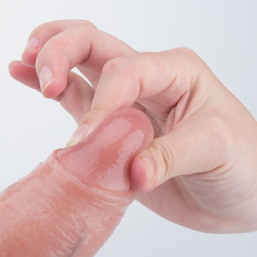 Our realistic dildo use food grade liquid silicone, non-toxic, odorless, safe to skin, long-lived, not cheap PVC! Natural color hand-painted on the tips, head and the whole body, never worried about color peeling or shaking off. Molded from a real penis, dual skin, soft skin outside, hardcore inside; and the visible texture, lifelike feeling, hand-painted veins and blood vessel, firm testicles; super realistic and flexible with durable shape.