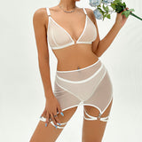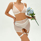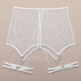 Mesh See-Through Sexy Garter Belt Cross Strap Sexy Lingerie Set