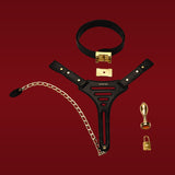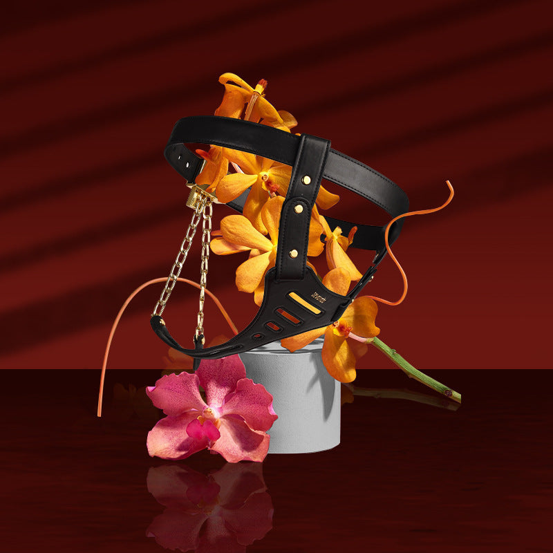 The Female Chatity Leather Belt has fourteen locking positions that can be adjusted, providing a secure and personalized fit. A hint of elegance is added by the superb and long-lasting zinc alloy chain. A strong and reliable connection is ensured by the chain link and lock working in unison to represent the wearer's instructions and devoted guardianship. The golden lock is attached and the lock cover is firmly sealed, locking the wearer's deepest desires.
